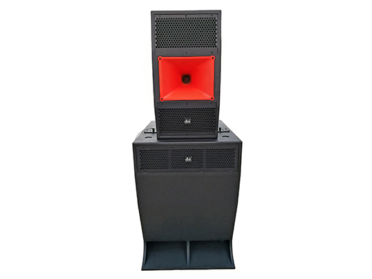 DSL210的箱体为梯形, 高、中、低单元均为独立的号角输出,提高了音箱的声压,